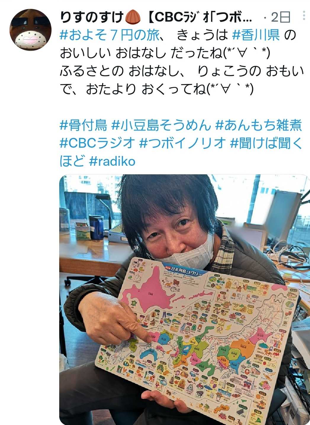 radikoのエリアフリーで聞いている人向けにご当地情報を送ってくれと祝日放送で募集したCBCラジオ、つボイノリオの聞けば聞くほど結果は日本地図が半分も埋まらない大惨敗そもそもエリアフリーは課金しなければ聴けないしわざわざつボイノリオ、小高直子の番組を聞くなんて元地元民がほとんどでしょう1県で1投稿あれば、1県パズルを埋めるというパッと見は全国で聴かれてる風現実は地方の人気無しそんな大失敗企画を祝日放送でもないのに日本地図パネルを埋めるためだけで地方の投稿を読み、全国で聴かれてるんだと自己満足をし始めた恥ずかしくないのかねこのジイサン