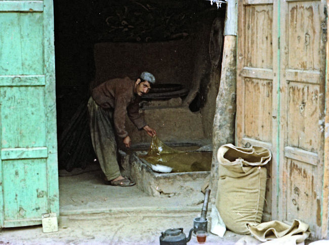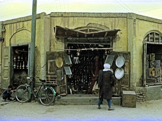 写真は、丘の上で草を食むラクダ、警察官(又は守衛さん)、金物屋、飴屋、道端のナン(パン)屋さんを手伝う子供達(ロシア侵攻前の 1977 年に撮ったものです)。