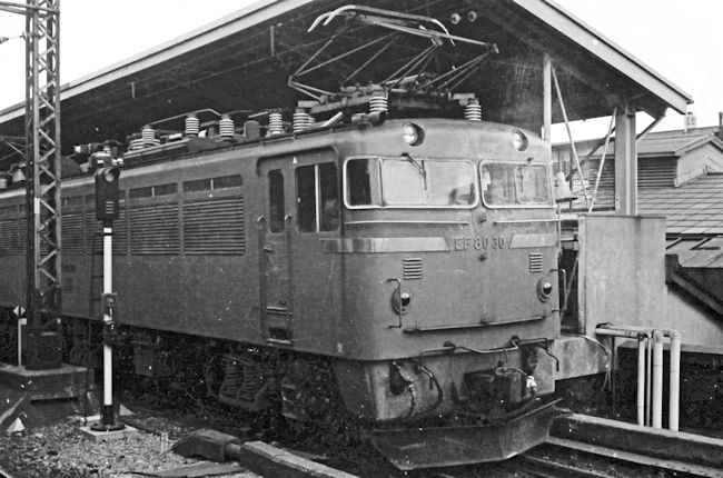The EF80 was developed specifically as a dual-current development of existing JNR electric locomotives. The second mass-produced dual-current electric locomotives operated by the JNR, a total of 63 locomotives were manufactured between 1962 and 1967. Deployed around the Tokyo area, the EF80s were mainly used on the Jōban Line and the general Mito area.