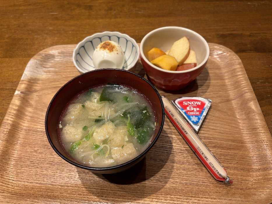 今日の味噌汁はわかめと豆苗の味噌汁…