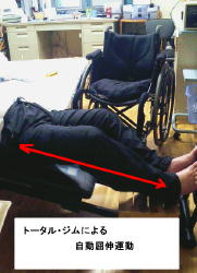 私は、仕事をしているので朝7時半から1時間、昼2時から1時間半、夜9時半から1時間半ぐらいの量を1日にこなしている。家族にも生活があり、そうそうあれもこれもとは言えない。朝干渉波とフット・ポンプ、マッサージとストレッチを妻にしてもらう。昼は、一人で出来るリハビリを重点的にする。夜は、息子の塾の都合でStanding Frameをセット・移乗させてもったり、妻に電動サイクルをセットしてもらう。それ以外はストレッチ台にての運動になる。一時期、トータル・ジムも使用していたが、70キロ近い器具をたたんだり広げたり、移動したりするのはかなりの負担を要するので諦めた。設置したままのスペースは私の所にはない。そして一般の方に、このスケジュールに合わせてもらうのは無理がある。