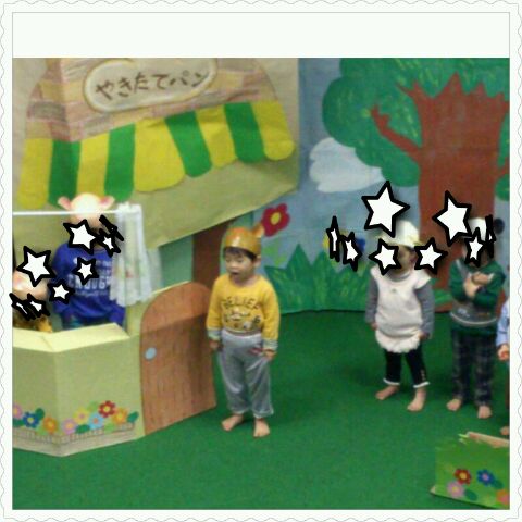 リスさんの帽子をかぶって「とんとんパン屋さん」の劇を頑張りました(^-^)