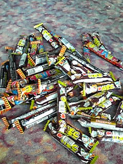 「チョコバット」をやったんだけど20本しかなかったので「うまい棒」チョコ味もまとめて買いました(^^;
