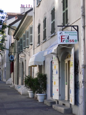 スイス、夏が戻ってきたのでしょうか?先週の後半の数日、汗ばむほどのお天気でした。そんな日の昼下がり、一体何してたかというと・・・・・、ベビーカー押しながらカメラ持って散歩に出掛けました。たまこのプロムナードinジュネーヴ。お付き合い下さいませ。********************************プロムナードって、フランス語だったのですね。良くアーケードのある駅前商店街などに付いてる名前、なんとかプロムナードって、アレです。ご存知でしたか?フランス語で書くと、Promenadeで散歩という意味になります。ちなみに女性名詞です。そうそう、アーケードも同じくフランス語ですよぉ~。意味は、アーチ状の回廊のこと。こちらも女性名詞です。子供を生んでからするようになったことは、まぁ~いくつかあるのですが、その中の一つが散歩です。今日は、そんなわたしの散歩コースを写真と共にお届けします。【お願い】 ジュネーヴにお住まいの方には、 わたしがどの辺に住んでいるかおおよその検討が付くと思いますが、 そっと胸の中にしまって頂けるようお願いします。(笑) わたしのお気に入り散歩コースの一つは、Carouge(カルージュ)です。ジュネーヴの中央駅から、トラムで15分くらいの距離にあるカルージュは、アートギャラリーやブティック、はたまた、お洒落なカフェやショップが立ち並ぶ女性が好みそうなストリートです。その日の気分で多少違ったりしますが、ここら辺からお散歩開始。 水玉模様のドアのお店は、ドライ・クリーニング屋さんです。可愛いデコレーションのウインドーがあったので覗いてみると、 お土産や子供の玩具なども置いてある雑貨屋さんでした。そして、目に付いたのがコチラ。 ヨーロッパの街中で良く見掛けるお店の看板ですかね。 途中のアイスクリームショップを横目に見て(現在、ダイエット中なもんで・笑)週末の夜になると若者で賑わう、クラブの角を曲がります。 ちょっと、ここら辺で一休みしようと思い、路を横断しようとしたところ、 パトカーの中から、警察官に呼び止められました。誰ですか?こんなところで、わたしを呼ぶのはっ!!!しかも、マダム・○○○○っと、フルネームでわたしを呼ぶではありませんかっ!?ベビーカー押しながら、旅行客でもなさそうなのに、さっきから写真をパチパチ撮っているわたしは、明らかに挙動不審者??(笑)わたくし、怪しい者ではありませんわよっ!と、心の中でつぶやき振り返ってみると、パトカーで巡回中のお隣さんのスペイン系イケメン警察官K男氏でした。初めて見るユニホーム姿もなかなかイケてるこのK男氏。「彼は、子供の頃、肥満児だったんだよ。」っと、彼の悲しい過去を知るたまおさんがお隣さんと知って、さぞやガッカリしたことでしょう。(笑)ちなみに、たまおさんと同級生のこのK男氏、花の独身でございます。ご興味のある方は、たまこまでお問い合わせ下さい。(笑)後編につづく