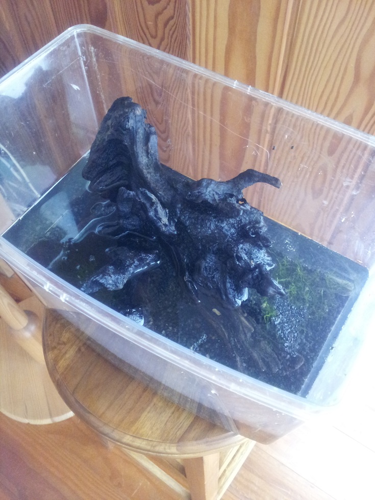 「進化」の過程で必要になる陸地には引っ越し以来ずっと中庭に転がしてあったADAのオールドブラックウッド(アマゾン現地で持ち出しそのものが禁止されたために超入手困難。マニアの間でかなり高値で取引されているらしい)で適当なサイズを2本ほど入れてみる。