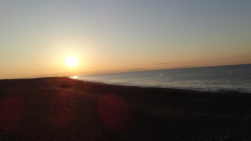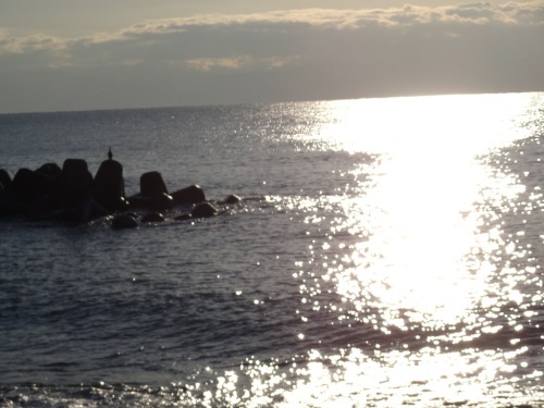 今朝の海辺は、相変わらず冷たい北風が吹いていた。また昨日から西の夜空には、月・金星・木星が並んで見え、そして金星の上の方には、7個ほどの集まっている星団(すばる)も見えている。