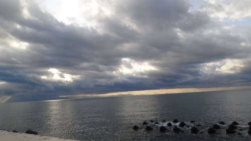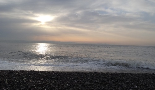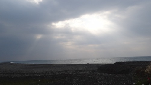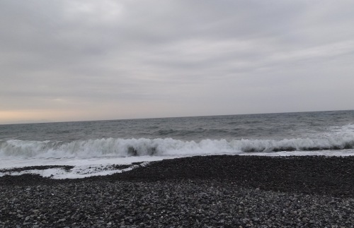 今朝の海辺は、一昨日からの低気圧の影響で西からの強い風が吹きつけ、波も3~5メートルの波しぶきを揚げていた。気温は5月中旬の陽気だとラジオは言っている。