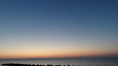 今朝の海辺は・・・。台風一過の夜明けの海辺で~す・・・。
