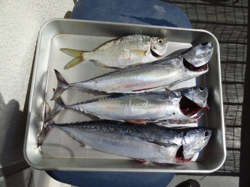 本日の釣果は・・・。 9月12日以来の釣行でありんす・・・。今日まで本当は、釣りばやりとうで、やりとうで・・・。(;^ω^)o/――~>゚))))彡ウズウズしとりましたんや~・・・。そやさかいに今日は台風一過のあとでんげど・・・。海はチート荒れ気味でありんしたが行き寄りましたで~・・・。始めの時分はでんな~あんじょうチートも釣れへんやったけんど・・・。潮も風がいくらか収まり寄ったその時に気寄りましたんや~・・・。てな訳で本日の釣果でありんす・・・・。ソーダカツオ君 みっつ タナゴ君 ひとつ