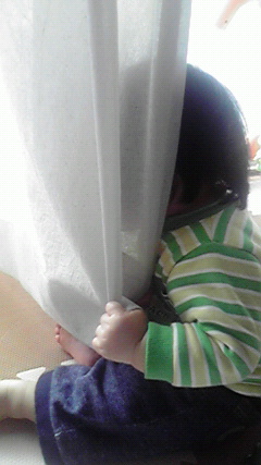 「いないいない。。。」 「ばぁぁ~」最近、カーテンを使って遊ぶようになりました。ママの声に合わせて「いないいないばぁ」をしてくれます。
