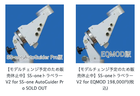 狭いベランダで、お気楽撮影をする機材を考えてた。AM5を使ってると、ウエイトをつけてバランス調整するのが本当に面倒になってきている。なので、久しぶりにほんまかさんのSS-ONE トラベラーV2はいくらだっけと見に行った。波動歯車のはやっぱり楽。20万以下ならトラベラーだけかな?おや?モデルチェンジをするって?そういえば以前ブログ内の動画で、波動歯車のトルク不足が出ているから、新しいのに変えるって話をしていた。出荷済みのは、無料で交換しますとも。あれからブログ更新もないからどうなってるんだろう。最近は、ブログに記事を書かず、動画をYouTubeへアップして、それを貼り付けていることが多い。続報はYouTubeにだけあげてるのかな?後で探してみよう。2/18以降のブログへの投稿がない。それにしてもよくYouTubeへあげる気になるな。めんどくさいと思うのだけど。撮影して〜の、切り貼りして〜の、テロップ入れ〜の確認し〜のでアップする作業。私には出来ない。めんどくさい。トルクのある波動歯車のサイズが現用と違うのかな?デザイン一新になるんだろうか?ちょっと気になるから、続報をたまーにチェックだわ。