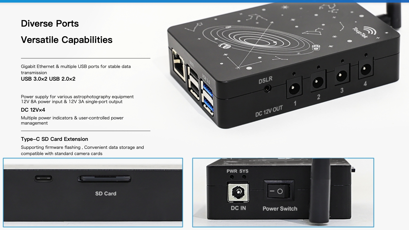 今月から月3冊無料になるなら年間契約しなかったけど・・・。楽天マガジンで星ナビ5月号をみていた。CP+の記事で気になる参考出品ありける。Touptek StellaVita紹介一行とちっさい写真だけ。やっぱりPCレスが主体になる時代なのかな?個人的には、やっぱりPC画面と睨めっこしなきゃ”やってる感”が足りなんだけどな。気になったので、メーカーサイトをチェック。ラズパイベースで、ZWO AsiAirのまるパクじゃないですか。後発機だけあって、対応カメラとか違いがある。・ToupTek Astro (すべてのデバイス)、ZWO (カメラ)、QHYCCD (一部のカメラ モデル)、PlayerOne (すべてのデバイス)いーんじゃない?ここでSvbonyまで混ぜてくれたらいいのにな。(まだ買ってないけど)残念なのが・・・・DSLRカメラでの撮影はサポートしておりません(開発中)レリーズ端子を作ってるけど、まだ遊んでる状態と。今後ファームウエアで色々対応するんだろう。ToupTekの取り扱いはどこがメインなのかな?個人輸入的な販売しか知らない。CP+への出品はどこがやったんだろう。国内販売をする気じゃなきゃださないだろうし。気になる価格は・・・$329USDちなみにZWO Asi Air Plus 256G $299USDちょっとお高いけど、ZWO専用でまとめずに汎用性があると言う利点があるかな。私みたいに、機材をヤムチャでやってる人向けかな。それより、ステラショット3を買っちまおうかな・・・。
