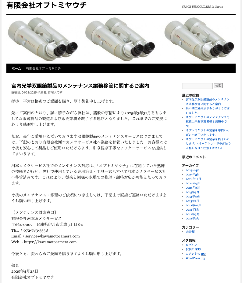 今夜出かけようかと思ったが、行っても今夜限りになりそうなのでやめた。明日も仕事だし。明日も仕事でも出かけることはあるが、久しぶりだと何か絶対忘れ物をする。無理はしない。この様子だと、4月も冬眠になりそうだ。さて、オプトミヤウチの受け入れ先が決まったようだ。なんにしても、あそこの技術が残ることができて良かった。ただメンテナンスだけで、製品製造は無いように思われる。埼玉ブランドとして、Vixenが引き受けたら良かったのに。男気を出して欲しかったな。星座観望用の広視野低倍率双眼鏡を、宮内が製造しビクセンが販売してたのに。
