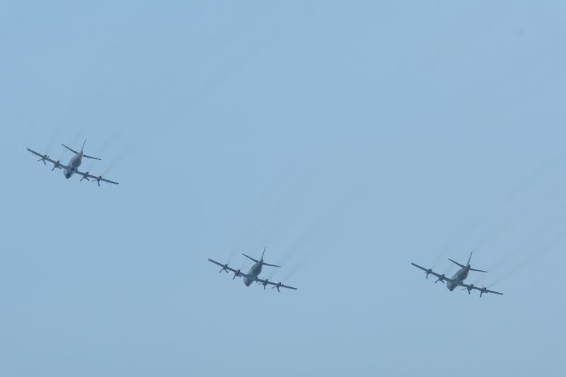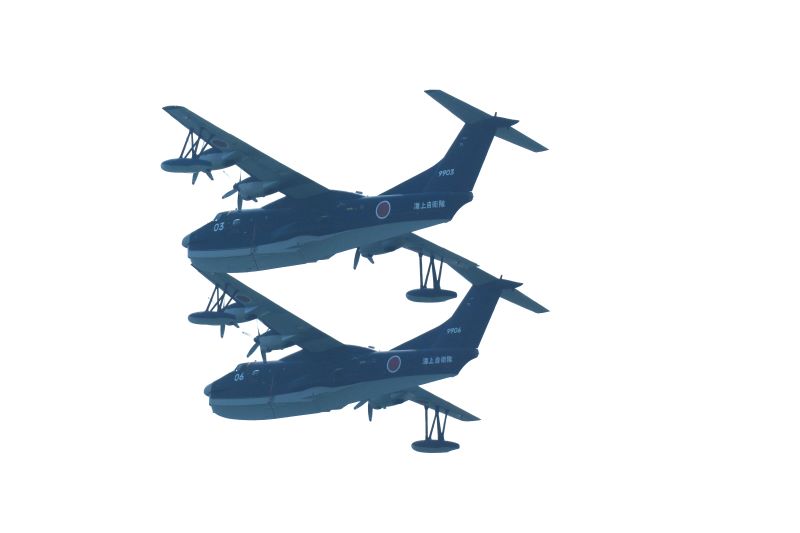 US2とEP-3が連続で飛び立ってるなぁと思ってたら、編隊で帰ってきた。