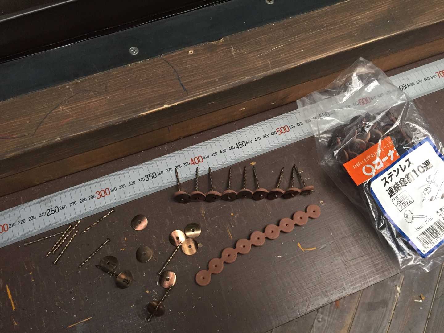 使っているステンレスネジ(再利用可能)にスポンジを通して防水( 腐蝕防止)を図ります、