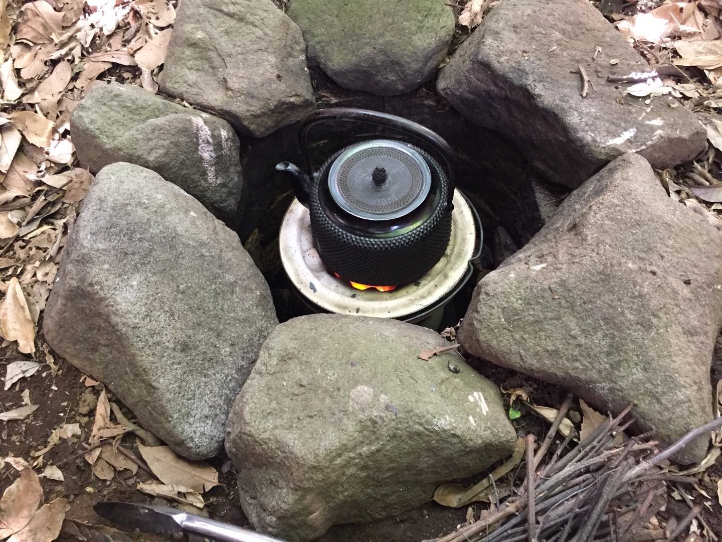 鉄瓶(新品)をのせた