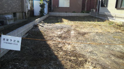 12月24日 スタジオさんに家を建てる予定の土地にロープをはってもらいました。この前知らない車が停まっていたので。ここは建設予定地ですよー