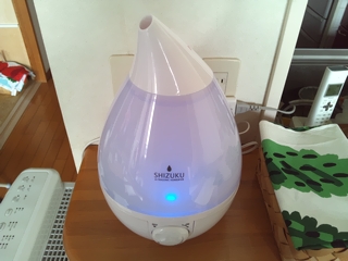 こんにちは。今日は神奈川は朝から雪が降っています。先週ぐらいから小学校でインフルエンザが流行っているみたいで同じマンションのお友達ですでに数人インフルエンザにかかっています。息子と娘はインフルエンザの予防接種は受けたんですが、昨夜から息子が頭痛と吐き気があり、今日は学校をお休みしました。お友達も頭痛と吐き気からはじまって、結局インフルエンザだったらしいので息子もその可能性が高そうだなぁ…。●●●この間、加湿器を買いました。我が家にはダイキンの加湿空気清浄器があるんですが、あんまり加湿されてる感覚がないのと、息子の部屋用にも加湿器が欲しかったので新しく加湿器を2つ買いました。無印の加湿器とも迷ったんですが、選んだのはShizukuという加湿器です。超音波式アロマ加湿器です。全く同じのを2つ買いました。タンクの容量は3.3Lあって連続加湿時間は約10時間。消費電力は38W。下の方にある丸いつまみを回すことで無段階で加湿の強さを変えられます。てっぺんの部分は360度穴の方向を変えられるので便利です。加湿量を最大にするともの凄い勢いでミストがもくもくと出ます。超音波式なので触っても熱くないです。で、使用感ですが…1日目、約6.8畳の洋室で扉を閉めきって加湿量を最大にしてみました。夜中に目がさめると床がビショビショ(汗)窓も結露が凄くって外の共有廊下まで水がたれてました。そして寝室の夫の大切にしているガラスのコレクションケースにまで結露が(@@;これはダメだという事で2日目は加湿量を約半分にして扉を開けて寝ました。2日目の夜は夫が夜勤だったため会社から帰ってきて玄関の扉を開けると廊下がミストの煙で真っ白だったらしいです。息子の部屋も白くもやもや。私達の寝室はミストの近くの布団が色が変わるくらいビショビショに濡れてました。あまりのパワフル具合にビックリです。昨夜は加湿量を1/3位にして寝てみたらとても快適でした。どこもびしょびしょになる事もなく、程よく加湿されていました。これからは上手に調整しながら使っていこうと思います。ブログランキングに参加しています。下のボタンをクリックしていただけると嬉しいです。↓にほんブログ村いつもありがとうございます!加湿器色々