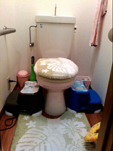 2歳半になる息子、ついにトイレに一人で行けるようになりました‼ 小さい子どもがトイレに行くには、意外と難関が多いのです。 トイレの一連の動作をまとめてみました‼ 1、トイレの電気をつける 2、子ども用便座を便器にのせる 3、ズボンとパンツを脱いで、便座に座る 4、流す 5、手を洗ってタオルでふく 6、ズボンとパンツをはく 7、トイレの電気を消す と、こんなに沢山の動作があります。 この7つの動作を無理なくできるようにうちのトイレを工夫しました。 実際のうちのトイレを公開! トイレに2つ。 電気の下にひとつ。 踏み台を3ヶ所においただけ‼ これだけで、一人でトイレに行けるようになりました‼ 踏み台が便器の横に2つあることで、両足がつき安定するようです。 ジャーっと流すのも、手を洗うのも踏み台のおかげでスムーズにできるようになり、 本人もトイレがすごく楽しいようです。 使うときは補助便座も自分でのせています。 ちょっとしたサポートがあれば、2才の子でも一人で簡単にトイレが出来るようになりますよ😊 もし、トイレがまだ一人でできずに悩んでいるかたがいましたら、ぜひ試してみてください👍 ビーンズステップ(トーマス) [ディズニー]ビーンズステップ ミッキーマウスBR セサミストリート ポッティシート グリーン ソフト便座 子供用 補助便座 SESAMESTREET おまる トイレト プリンセス ソフト便座ポッティシート 子供用便座便器に置くだけトイレトレーニングトイトレ シンデレラ トイトレ