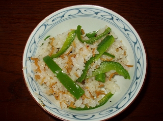 今日のランチは、ちりめんじゃこ混ぜご飯を作りました材料・ちりめんじゃこ ・ピーマン(5個)・生姜作り方1.鍋にゴマ油をいれる2.細切りにしたピーマンと生姜を炒める3.ご飯と、ちりめんじゃこをいれ、炒める4.出来上がり中に入れる具は、ピーマンじゃなくても、しそや練り梅をトッピングしても