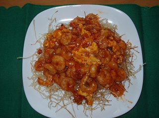今日のお昼は、えびチリを作りました。子供も食べるので、豆板醤はいれませんでした