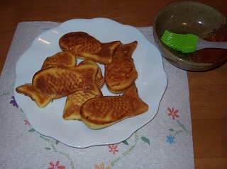 昨日は、雪も降っていたので、おやつにビタントニオで鯛焼きを作りました。前回作ったときに、甘みが少なかったので、今回は砂糖を少したして作りました。最初は、プレーンで作っていましたが、冷蔵庫にチョコがあったので、途中からチョコ入り鯛焼きにしたら、子供たちは大喜びでしたスイートタルトさんから教えてもらった\100ショップで買ったシリコンブラシ。柔らかくて、油を塗るときに、とっても便利