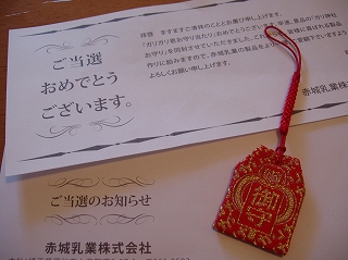お正月に、ガリガリくんのイチゴミルク味のアイスを買ったら、当たりがでました。当たりの商品は、ガリ神社のお守りです。今は、息子の幼稚園バッグにつけてあります