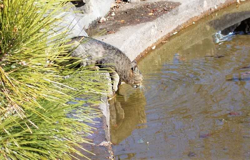 ​​喉が渇いたなぁ‥と 池の水を飲んでいた猫