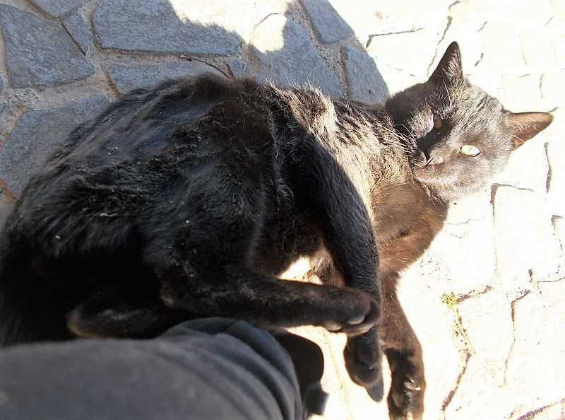 ​​さっきの黒猫、呼んだら足元に来てゴロリ‥