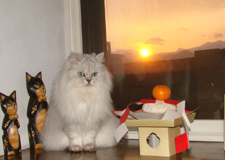 にゃはぁ~ あたい 雪ん子でぇ~す みにゃしゃまぁ あけましておめでとうございます! 今年も小鉄オイタンんちのおとぼけファミリーを宜しくお願い致しますにゃん 今年もボケ具合絶好調の雪ん子ちゃん・・・じょうすにご挨拶できました 鈴は寝くさって 新年早々サボリでございます 腕枕してる お正月は寝正月にかぎるにゃん・・・むにゃむにゃ・・・我家はお隣で一緒に年越しソバを食べてからカウントダウン それで隣の リクちゃん からのご挨拶僕は小鉄くんちの隣の住人リクにゃん よろしくお願いします 元旦はお隣と両親と一緒に初詣に出かけた これでも・・・ 皆様にとって今年がよい年になりますように