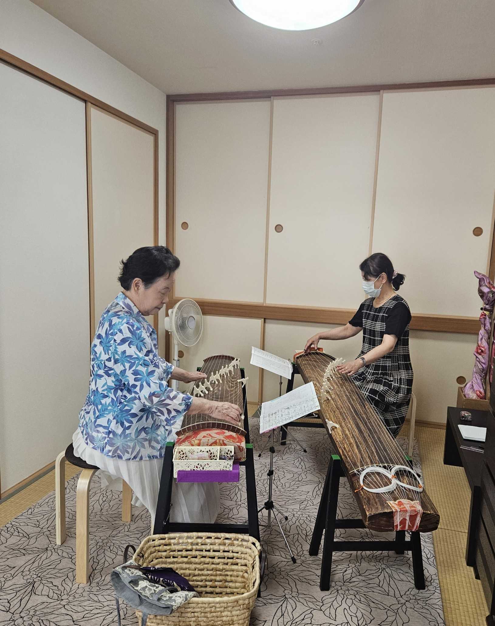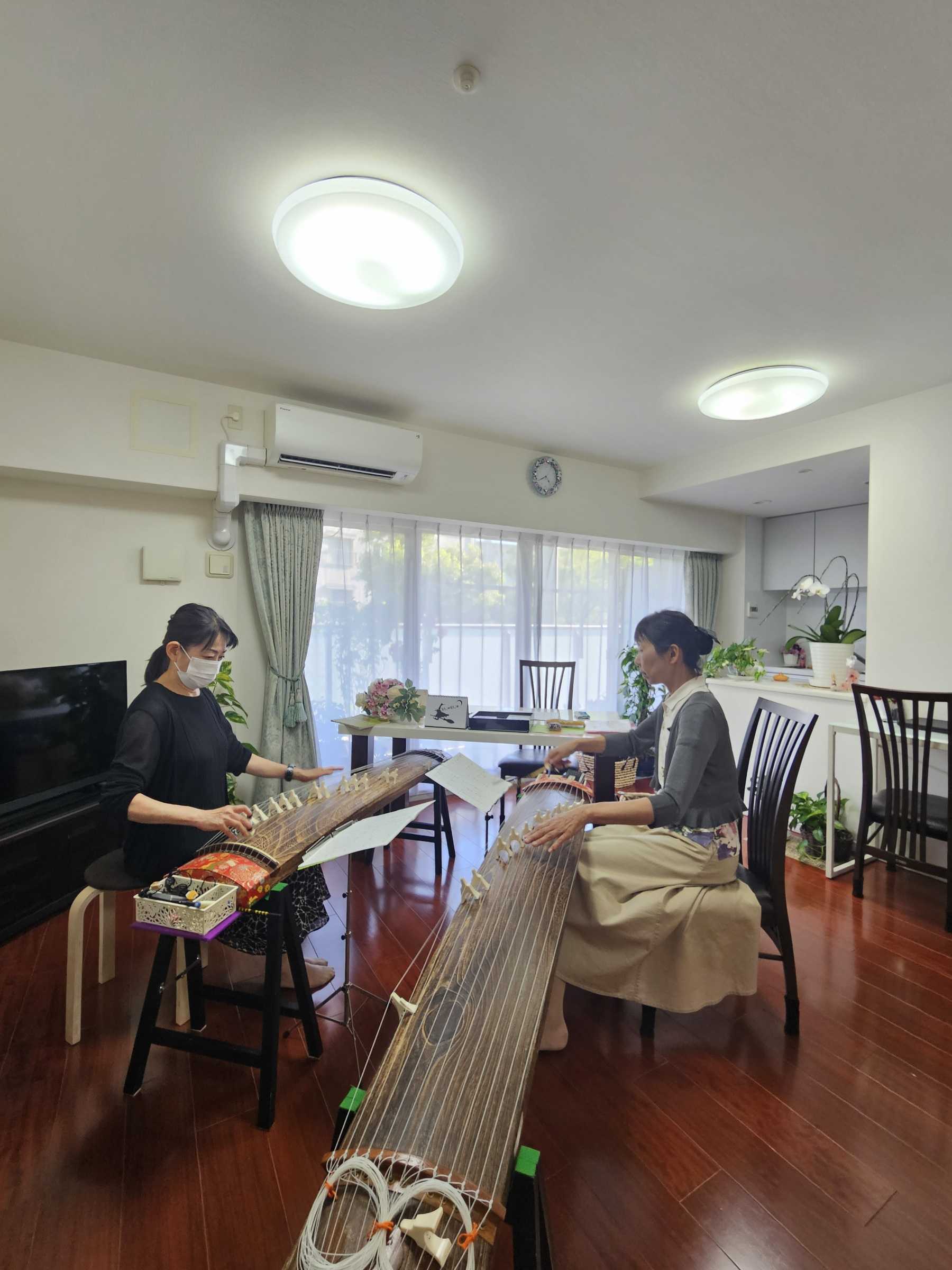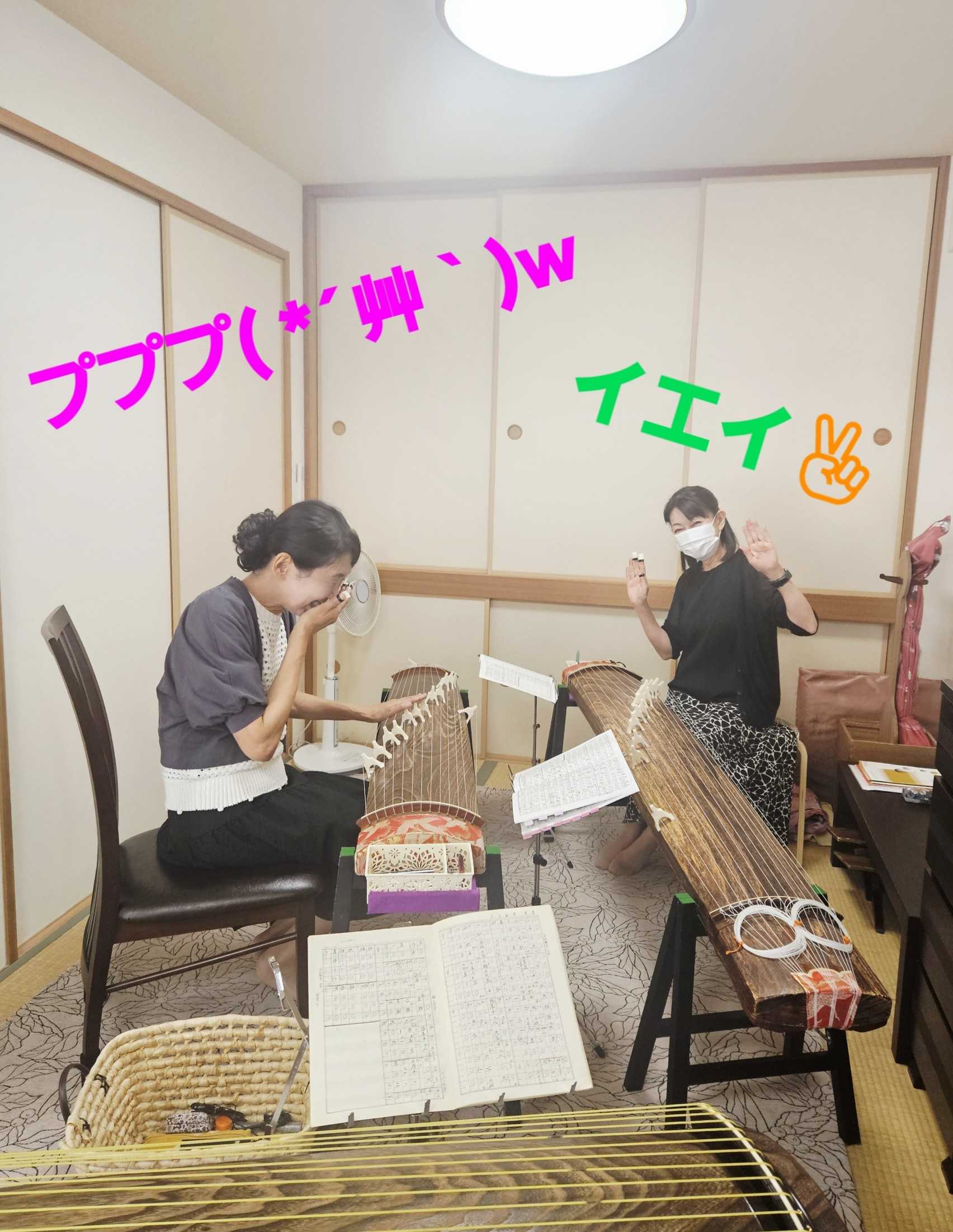 いつ『編曲八千代獅子』の合奏が入ってくるかわからない…ですので、今のうちに頑張ってお稽古してくれています今日のお稽古曲は・編曲八千代獅子・花の歌・花りんどうの琴と三絃・みなかみ詩情・遠き日への旅情がございましたお写真撮り忘れの方も…曜日の違うお二人ですが特レスなどで一緒になることも…夏休み高校1年生のYちゃんは運動部の部活帰りに通ってくれました来月は合宿もあるそうで勉強に部活そしてお稽古と全てに頑張ってくれています半年後には1年間の海外留学も控えているのでまた会えない日がやってきますが仕方ないですお姉ちゃんのほうは今月から海外の大学に行ってしまいましたこの2人のお嬢様と過ごしているといろいろ刺激をいただき若いうちにこれほどまでにも目標も持って人生を歩んでいることが羨ましくもあります今日もお稽古そっちのけで時間を忘れていろいろなお話をして楽しかったですでも、私たちだって50になっても60になってもそして70になってもいえ80になっても打ち込めることがあるので毎日刺激があり人生を楽しく過ごせますねみなかみ詩情の17絃皆さん、だんだんと形になってきましたこちらは来月のステージに向けて練習に励んでいます合奏の途中で…わちゃわちゃ宮古さんがみんなの練習風景の写真を写してくださったのでそれならご一緒に~と今週いっぱいの予想気温が高すぎです皆さん、水分をしっかり摂られて出来るだけ涼しくお過ごしくださいにほんブログ村ブログランキングに参加しています。クリックして頂けましたら嬉しいです♪