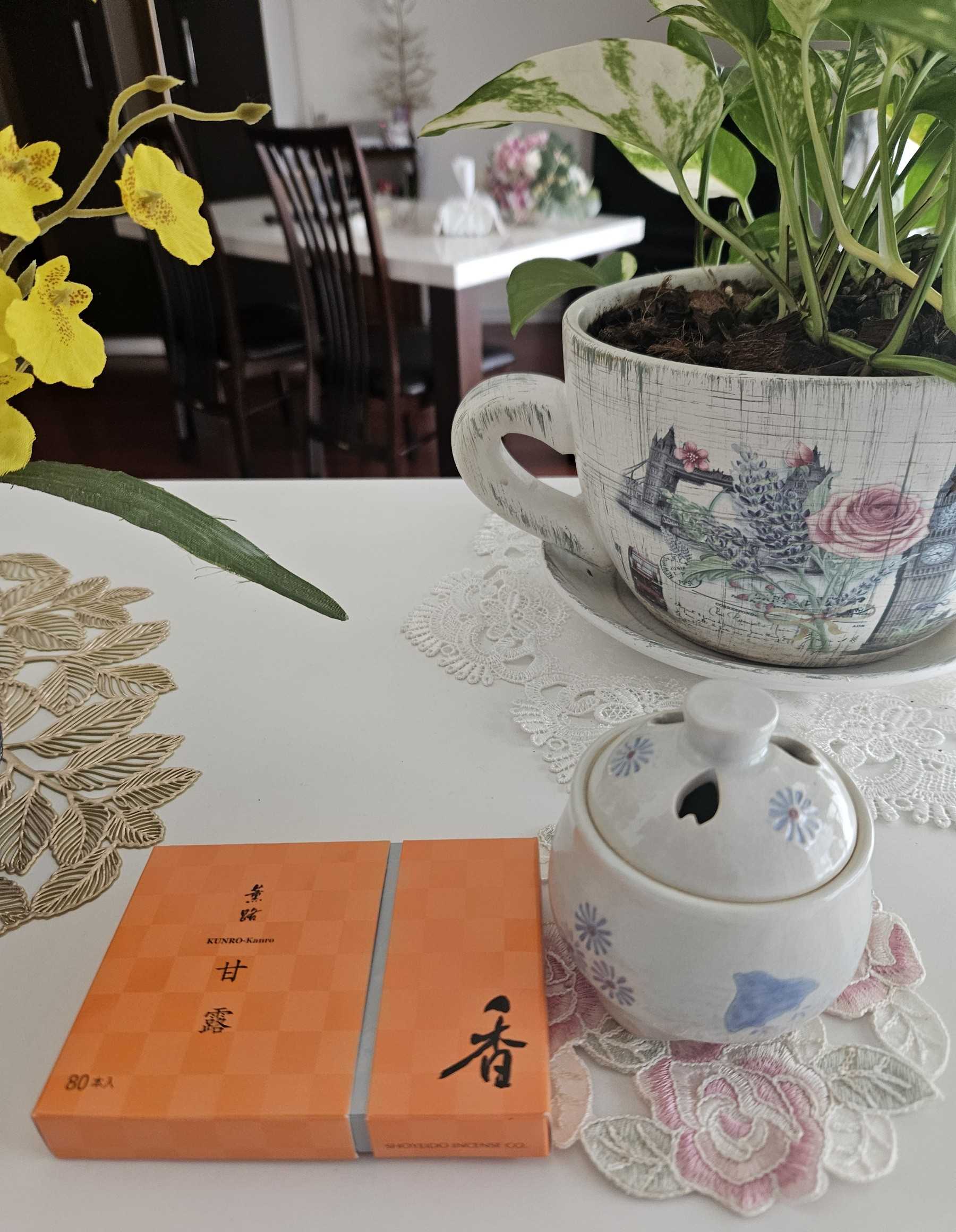お盆の最中ですが通常のお稽古でしたご家族が帰省されるというお弟子さんは事前に振替をしお稽古済その空いた2枠に別のお弟子さんが「入らせていただいてよろしいでしょうか」と、お尋ねがありその方ご自身の2枠プラスお休みの方の2枠を追加され驚異の合計4枠2時~6時まで頑張りました『花りんどう』と『黒髪』のお三絃に『編曲八千代獅子』の1箏、そして講習会の『KURA』のお箏です休憩を入れながらでしたが2人とも集中力も切れることなくあっという間の時間でした『KURA』では私の17絃と合奏もして何となくですが曲想がつかめたかな?今日のお稽古ではまだ練習するつもりはありませんでしたが次のお弟子さんが来られるまでの追い込みに『箏と17絃のための歳時記』の弾いてみましょうかと、彼女が2箏で私が1箏曲想や指使いなど細かいことは講習会で作曲者の先生に教えていただけるのでまずは曲の流れを稽古しておかなければなりませんね楽しかったですよ夕方からのさんは急遽、お仕事でお休みになり火曜日最終枠のОさんは『みなかみ詩情』の第一楽章を私の17絃と合奏しました輪連になると面白いほどにスピードが落ちるОさん(笑)17絃との合奏で曲の雰囲気が少しつかめたと仰ってくれました次回は、第二楽章の合奏をしたいと思います今日は私の好きなお香をいただきまた香炉まで早速香りに包まれて癒しの時間を過ごしています有難うございましたにほんブログ村ブログランキングに参加しています。クリックして頂けましたら嬉しいです♪