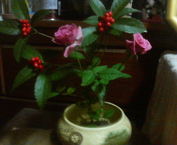 ↑今日はブログに載せる写真がないので、会社から帰った途端、あわてて玄関の花を 撮ってみました。 千両とバラです。いづれも我が家の庭に咲いていたものです。 生け花もろくにしたことのない「団塊おじさん(よっしーせお)」が、 勝手にさしたものです。 いかにも下手ですね。 暗いところで、ましてや携帯で撮ったものですが、まったくダメですね。 お恥ずかしい限りです。平成22年1月6日(水) 21:25さて、「団塊おじさん(よっしーせお)の今日の一言は、」前回の続きです。福祉国家「スエーデンの挑戦」についてです。前回は、100年に1度の経済不況をのり切る対策として、内橋克人さんの「FEC」をご紹介しましたが、今回は「スエーデンの挑戦」です。スエーデンでは、不況が続いた時期に「教育」と「地方自治」に力をいれたそうです。「企業が不況で困っている時、日本では「賃下げ」とか「派遣切り」で対応していますが、スエーデンでは内需拡大のために、「賃上げ」をしたそうです。また、「教育」にも力を注ぎ、新しい技術の開発とか、付加価値の高い新商品を開発しています。今でも大学までの教育費は無料だそうです。更に、医療費も18才までは無料、大人でも年間1万円程度を超える部分は無料です。これが福祉国家といわれる所以でしょう。また、不況の時期に「地方自治」にも力をいれ、現場でのきめ細かい福祉に注力致しました。スエーデンは、人口1000万人以下の小国ですが、消費税が25%と高いにもかかわらず、国民は住みやすいと感じています。スエーデンの国民は「サイフが2つある」と言われています。1つは国民自身のサイフで、もう1つのサイフが政府に預けている税金のことです。それだけ国民は、政府の年金、福祉などの対策を信頼しているのです。税金が上がっても国民の生活が豊かになるという実感があるからこそ、国民は政府を信頼しているのです。また、大人は女性を含めて働くことが常識になっています。それだけ、子育て、育児など働く環境が充実しているのです。失業給付も1年間ぐらいは全員支給されます。同じ自由経済社会の国でありながら、考え方は日本とまったく逆です。こんなに不況で困っている日本も、少しはスエーデンを見習う必要があるのではないか? と、考える「団塊おじさん(よっしーせお)」です。鳩山総理のツイッターにでも入れてみたいなあ?? と、思ったりもします。↓今後ともこのブログを続けた方が良いとおっしゃって頂ける方は、下記をクリックして下さいね。