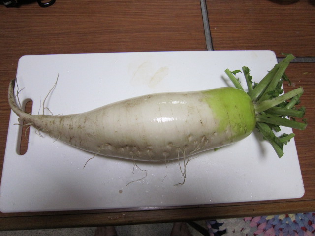 平成23年6月21日(火) 14:00↑ この花、何の花?↓ 少し近寄ってアップで見てみましょうか。↑ いったい何の花なんでしょうね・・・ コタエは最後まで読んでくださった方には分かりますよ。 陶芸で作った自作の花瓶にさしてみました。さあ、今日の話題は、農園のその後の手入れと生育状況のご報告です。1.トウモロコシのカラス対策↑ 先日ヤングコーンで食べたトウモロコシ。 その後順調に育ってますよ。 もう直ぐ収穫です。何といっても朝取りのトウモロコシの味は育てている人にしか 味わえないものです。 右は枝豆畑です。奥の白いカンレイシャは隣地のトウモロコシで、 左の赤い境界線の左は、別の隣地のキュウリが見えています。 このように、ここの農園は横から見ると同じものが一直線に並んでいますので 整然とした感じです。 全部で110区画、私の農園は110分の1ということです。 横3メートル、たて10メートルの10坪も満たない小さな農園ですが それでも一家で頂くには十分すぎる量の収穫です。 有難いことですし、楽しみもあって、いい農園ライフを満喫しております。 そうそう、カラス対策の話しに戻しましょう。↑ ということで、天敵のカラスが熟するのを待っています。 何分、空の上から、鳥瞰図でみているのでかないません。 このカラス対策として、カンレイシャを全体に巻きつけ、 カラスの侵入を防ぎます。 私のカンレイシャは長年使っているので、色が黒くてしかも破けています。 お隣さんのは白くてきれいです。 カラスって真上から垂直には飛んで来れないのです。 直下型は苦手なのですね。 このカラスの特性を利用して、上は開いたままでもかまいません。 横が隠れていればいいのです。 カラスは記憶力がいいので、一度狙われたら、何度もその畑に来ます。 カラスに味あわせる前にこうして防いでおけば安心です。 一度こんなこともありました。 ある奥様と子供達が喜んでトウモロコシを収穫し、自転車の前かごに 入れておきました。 そこへナナメ上から滑走してきたカラスが、あっという間に取っていきました。 子供さんはびっくりしてふるえていましたよ。 カラスというのは横から来て取っていく、まさに「横取り」ですね。 でも、このあたりは、いのししも猿もでないので、カラス対策だけで安心です。 今年の里山では、いのしし猿対策が大変なようですが・・・2.つづいて 里芋です。↑ 里芋はマルチを剥がして、化学肥料1/2カップを追肥。 乾燥防止にワラを敷きました。ワラが飛ばないように土で覆います。3.ITテープ↑ 今度は虫除けテープです。ハエ取り紙のようなもので、名前がITテープ。 どこがITなのでしょうねえ? ナスの横に設置して置きました。4.その他の生育状態もみてみましょう。↑ キュウリ「夏すずみ」も順調に収穫中です。 化学肥1/4カップ追肥しておきました。 ↑ 大玉トマト「レイカ」も順調に生育しています。↑ ミニトマト「アイコ」も順調。 奥のほうは赤くなったのがあります。 一つ食べてみました。甘くて美味しい。ちょっと皮が固い。 アイコの皮は固めなんですね。 ↑ ナスも↑ ししとう「甘とう美人」も順調順調。↑ パプリカもあと、インゲン「サクサク王子」や、枝まめ「湯あがり娘」と「天ヶ峰」 落花生、ミニごぼう、ズッキーニ など 載せようと思いましたが楽天ブログの一日の写真登載量をオーバーしてしまいました。残念な・・・今日、ショックだったことは、キュウリが一本枯れていました。こちらも残念な・・・まあ他にもあるのでまあいいか。 隣のキュウリのわき目を伸ばして収穫量は確保することとしますか。早速帰って、大根、キュウリ、ズッキーニ、パプリカなどを浅漬けしておきました。それでは今日はここまでとします。さいなら、さいなら、さいならというわけで、また逢う日まで。 尾崎紀世彦 - また逢う日までおっとと、写真を掲載して解答を書こうとおもっていて、容量オーバーでうっかり忘れるところでした。冒頭のこの花なんの花?は、大根の花でした。意外とかわいいですね。↓ 今日も最後まで読んで頂き、ありがとうございました。 当ブログは、「日記(その他)ランキング」で、1700人中、只今50位前後です。 今後ともこのブログを続けたほうが良いと、仰っていただける方は、 お帰りに、下記ボタンを1日1度、ポチっと応援していただけると励みになります。 (1日1回のシジミ汁の歌が聞こえてきそう・・・なーんてネ?) ☆ いつも・・いつも、感謝・感謝の気持ちで生きてきたいものですネ! *** 明日枯れる花にも水やる心 ***じゃあ又ね!
