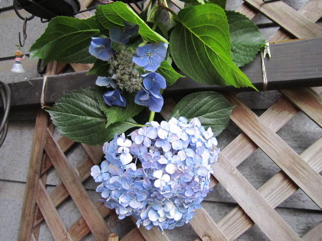 平成23年6月30日(木) 11:40 夏越祭早いもので今年ももう半分が終わりますね。今日は旧暦で言えば5月29日です。という事は、明日は旧暦6月1日。↑ あじさいのおまじない。 旧暦6月1日にあじさいを軒下につるしておくというおまじないがあります。 私は玄関脇に吊るしてみまたよ。 こうしておくと ・お金に(お小遣いに)不自由しない。 ・流行病にかからない。 ・商売が繁盛する。 等など、各地で言い伝えがあります。 私は、小遣いに不自由しないといいなあ! って、高望みですよねえ。ははは。 昔の人は、紫陽花の花びら(正しくはガク)をお金に見立てたのでしょうか。 紫陽花には小さな花びらがいっぱいあります。 この花びらが小銭(小判)であれば、どんなに素晴らしいものでしょう。 現実はなかなかそうは行きません。 迷信と言うか、おまじないと考えた方がいいかもね。 でも、こうして吊るしてしまう「団塊おじさん(よっしーせお)」でした。 あじさいは漢字で書くと紫陽花と書きますが、 あじさいの語源は 「あずさあい」だそうです。 漢字で書くと「集まる」に「真」に宮里藍ちゃんの「藍」。 つまり、「集真藍」で 「あずさあい」です。 真の藍色が集まっている花という意味でしょうか。 読み方も時代とともに変化していきました。 「あずさあい」→「あずさい」→「あじさい」と変化していったものです。 ですから、紫陽花は藍でなければなりません。 最近は、白や赤の紫陽花もありますが、藍色の紫陽花を見ると 懐かしい故郷に帰った感じがするものです。 ご先祖様にお礼を言いたい気持ちになりますね。 6月1日は私の父親の命日です。 ご仏前に手を合わせましょう。感謝しましょう。 ついでに、お小遣いに不自由しませんように!と。 あはは。そして、鉢植えのバジルが大きくなってきました。↑ 上の写真は6月14に撮影したものです。 そして、半月後の本日の状況です。 バジルも成長しています。 私達人間も、あの大震災から、早く復興したいものですね・・・。さあ、今日の音楽です。 紫陽花の詩 グレープ(さだまさし)↓ 今日も最後まで読んで頂き、ありがとうございました。 当ブログは、「日記(その他)ランキング」で、1700人中、只今50位前後です。 今後ともこのブログを続けたほうが良いと、仰っていただける方は、 お帰りに、下記ボタンを1日1度、ポチっと応援していただけると励みになります。 (1日1回のシジミ汁の歌が聞こえてきそう・・・なーんてネ?) ☆ いつも・・いつも、感謝・感謝の気持ちで生きてきたいものですネ! *** 明日枯れる花にも水やる心 ***じゃあ又ね!