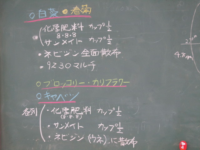 平成24年8月11日(土)今日は蒸し暑い一日でした。トミー農園での農園作業をご紹介いたします。先ずはブロッコリー、カリフラワーの列とキャベツの列の畑の準備です。スコップで耕します。スコップの刃の長さが30センチなので、目一杯差し込んで30センチの深さまで耕します。この作業が大変です。蒸し暑いので、汗びっしょりです。以前、通路だったところは、スコップの刃がなかなか入りません。やっと入れて、固まった土をほぐしていきます。そして、クワで溝を掘って、化学肥料、サンメイトを入れ、ねこぶ病対策のため、ネビジン粒剤をまいて、埋め戻しです。もうここまでやったら、体力的に限度です。熱中症になってもいけないので、今日はこれまでと致しました。また、日を改めて残りの作業はやりたいと思います。ついでに・・・ニンジンも順調に発芽しました。ここまで、発芽したら、もう黒マルチも不要ですね。ネギも順調に育ってます。少しずつ、少しずつ、土を掛けていきます。収穫の冬まで、徐々に長くなっていきます。まあ今日は、暑い一日では有りましたが、いい汗かきました。↓ 今日も最後まで読んで頂き、ありがとうございました。 当ブログは、「日記(その他)ランキング」で、1700人中、只今40位前後です。 今後ともこのブログを続けたほうが良いと、仰っていただける方は、 お帰りに、下記ボタンを1日1度、ポチっと応援していただけると励みになります。 (1日1回のシジミ汁の歌が聞こえてきそう・・・なーんてネ?) ☆ いつも・・いつも、感謝・感謝の気持ちで生きてきたいものですネ! *** 明日枯れる花にも水やる心 ***じゃあ又ね!