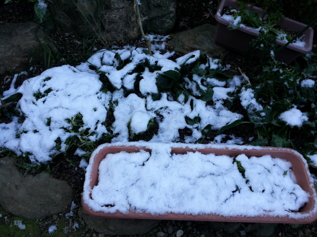 平成26年2月19日(水) 雨水暦の上では今日は「雨水」。雪や氷が解けて水になる日ですね。とはいえ、道路ではあちこちにまだまだ雪の山が残る東京です。1週間前の天気予報では今日は雪の予報であったが、低気圧が南にそれて、天気は晴れ。でも風が冷たい。出勤日以外は連日雪かきが続いています。今日は家の庭の雪かきをしました。そうしたら、およよ・・・雪の下から出てくる出てくる野菜のかずかず。しかもみんな元気です。雪かきが楽しくなりました。まるで天然の冷凍庫ですね。雪国の光景では見たことがありますが、こんな状態の経験は、はじめてです。この大雪で野菜が高騰しているようですが、こんな天然の冷凍庫があれば、買出しに行く必要もありません。雪の下で思い出しましたが、囲碁用語に「石の下」という言葉があります。自分の石を相手に取らせて、その中に打ち込むことにより、相手の石を全滅させる方法が「石の下」です。なかなか高度な技ですが、この石の下ならぬ雪の下です。それぞれ大変な宝物があるということですね。お花にもユキノシタというのもありましたね。言えて妙なりですネ。それと、今日は雪かきの間に確定申告に行ってきました。税務署に行くと大変な人で時間もかかりますので、近くのお役所で受付だけしてもらいました。申告書の内容は十分理解しているつもりなので、これといった相談もありません。受理印を押してもらえればそれで十分です。簡単に終わりました。確定申告から帰って温室の雪も処理しました。ガラスの温室の上においていたプランターが一部割れていました。上のプランター類をどかして見たら、むむむ・・・温室の天井のガラスが雪の重みで割れているじぁありませんか。割れたガラスを処分して、天井に板を置きました。割れたガラスは危ないので、袋ずめして危険物でゴミだしです。まあ、今回の大雪は何十年ぶりと言いますから、先日のビニールハウスといい、今回の温室といいまあ、この程度でよかったということにしましょう。↓ 今日も最後まで読んで頂き、ありがとうございました。 当ブログは、「日記(その他)ランキング」で、只今23位です。 今後ともこのブログを続けたほうが良いと、仰っていただける方は、 お帰りに、下記ボタンを1日1度、ポチっと応援していただけると励みになります。 (1日1回のシジミ汁の歌が聞こえてきそう・・・なーんてネ?) ☆ いつも・・いつも、感謝・感謝の気持ちで生きてきたいものですネ! *** 明日枯れる花にも水やる心 ***じゃあ又ね!