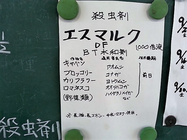 キャベツ、ブロッコリー、カリフラワーの列に消毒です。