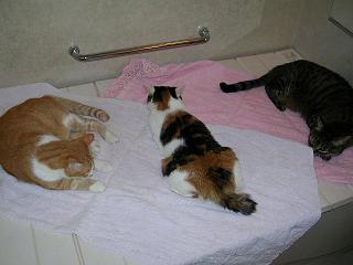 残り湯の入ったバスタブに集まる奴ら・・・気持ち良さそうねーそろそろ、お爪もチョッキンしようね・・・ッフッフッフ