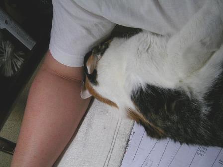珍しく仕事中にミュウが潜り込んできました・・・潜り込み過ぎて・・・ズボ!!