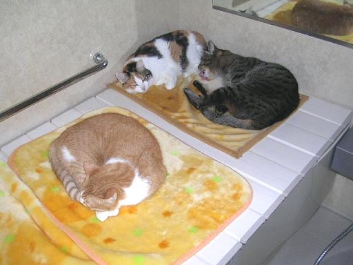 寒いせいか最近は床暖房(風呂のフタの上)かベッドの上で怠惰に寝る子達・・・(ーー;)斬新なネタを提供してくれ~~~\(◎o◎)/!