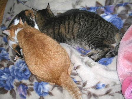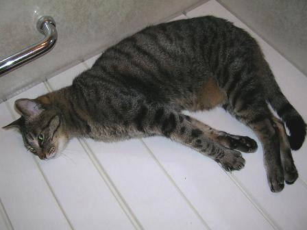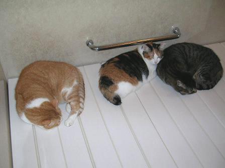 仲良く風呂場で寝ていますが・・・実はこの後、目を覆いたくなるような惨劇が・・・ニャゴがケロケロケロッピーを辺り一面に・・・\(◎o◎)/!勘弁しちくり!!(ーー;)
