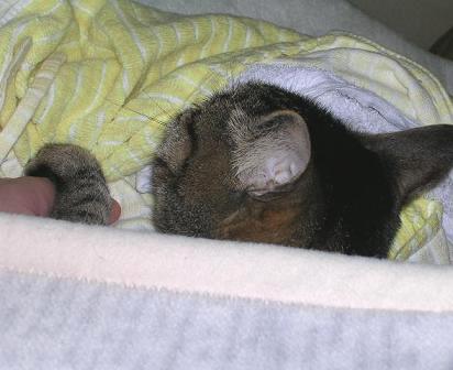 モモちゃんを毛布に埋めてみました(爆結構気に入ったご様子・・・ぷぷ♪