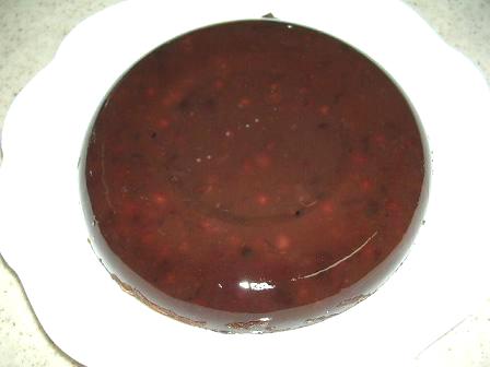 トップスのチョコレートケーキ♪ナイフで切るのが面倒だったので・・・^_^;胡桃の入ったチョコクリームとスポンジを重ねています~(^O^)/美味しゅうございました・・・