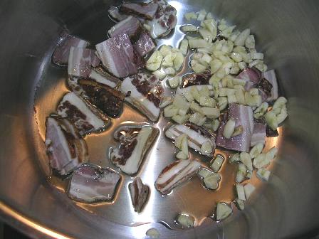 自家製ベーコンだの自家製パンチェッタだのとニンニクを鍋で炒めます。玉ねぎと人参をテキトーに切ります。さっきの鍋に入れて炒めます。あ!!できちゃった!!(ウソ実はビーフシチューの残りやミートソース、トマトソースなどなどの残りを冷凍庫にストックしていたのをぶち込んで、デミグラス缶を補強に入れただけっす。^_^;セロリの葉っぱやピーマンもザク切りにして煮ます。全てが煮えたら冷ましてからミキサーでガッーっとやっちゃいます。ホントはミキサーにかけてから一度細かい目のザルで漉すと良いのですが面倒なのでそのまま鍋に戻して味を整えながら煮込みます。っで牛肉です。特売で安さに釣られて・・・こーれーがー大失敗で・・・超硬いです!!\(◎o◎)/!柔らかくなった頃にはパサつきはじめました(大爆発!!まぁ~とりあえず出来ましたので・・・^_^;煮込んでる間にパンも焼いちゃいました。(^^ゞ