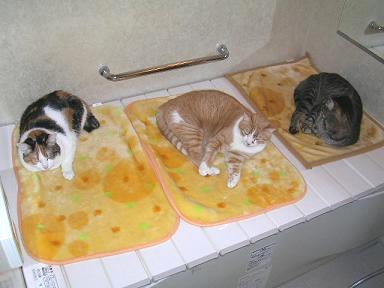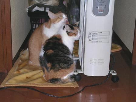 今日は寒いので・・・ヒーターの前に集まっています。(^^ゞニャゴはリビングのテーブルの上でボケボケしてます(爆