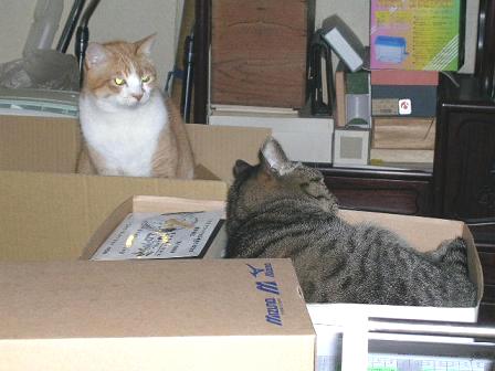 モモ『ちょっとー!その段ボールはアタイの物よ!!』ニャゴ『ッシャー!!』モモ『フン!今日はこのぐらいで勘弁してあげるわ!』その段ボールはキミ達のじゃないからね・・・(ーー;)