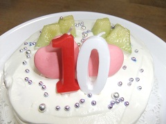長男が10歳の誕生日を、9月初めに迎えました今年も長男の希望で、手作りケーキデコレーションに適当なフルーツがない時期なので毎年困るのですがキュウイとブルーベリーにすれば良かったと、今更思う…子供たちはメロンが好きなので中に挟むのをメロンにしようと思い、メロンを使ったのですがデコレーション部分には使い方に困ったメロンは使わないか、他のフルーツにした方が良かったとそして、氷で冷やしながらでも、生クリームの扱いに大変する暑い時期なのでケーキに塗ってる最中に、どんどんドロリ~節電になる前から、我が家では冷房設定温度は、昼間28℃・夜間(滅多に使用せず)29℃でそれ以下にすると寒いと皆が言うくらいなのですがケーキのデコ中は、部屋を冷え冷えにすべきだったかも毎年、数字ロウソクをケーキに立てるのですが1と0の数字ロウソクを用意し忘れていて、慌てて買いにロウソクを買いに出た際に購入したハートのマカロンも欲しい色が売り切れだったし言い訳と反省だらけでアップするのは、恥ずかしすぎる仕上がりです長男、ゴメン…しかし、長男は満足そうだったし主人も美味しい!と声をあげてたので11月の次男の誕生日は、もうちょっと頑張ろうと思います…<< 活用品 >>失敗知らずでスポンジケーキが焼けますスポンジケーキ価格:600円(税込、送料別)熱や衝撃に強いポリカーボネート製 大特価!PC100ボール【mastrad(マストラッド)】 ★20%OFF★ フルシリコン スパチュラ【便利なお菓子道具】計量カップセット 3P 楽天ショップ期間限定価格P柄 【変型】パレット 6号やさしい暮らしTOP