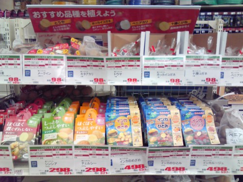 こんにちは~こうめまま★のテラス菜園へようこそ 昨日、HCでハケ-ン!!(o・ω『+』 種芋たち キャハ━━━━(#゚ロ゚#)━━━━ッ!!種芋いっぱいあるや~ん♪定番の男爵やメークインの他にシンシアやチェルシーインカのめざめ、インカのひとみなどなどそれに我が家には嬉しい、ばら売りの種類も豊富♪(@´゚艸`)ウフウフそっかぁ~今の時期ならこんなにも選び放題なのね!φ(・ェ・o)メモメモ今まで2月以降にHCへ見に行ってたけど、遅かったのね~(;^ω^) 選んだ種芋たち 今年はテラス菜園になったので1Kgサイズを買おうかなぁと思っていたのですがばら売りの種芋を見てると色んな品種を育てたくなり~( ̄∀ ̄*)結局、ばら売りで4種類の種芋を購入しました時計回りに男爵、メークイン、キタアカリ、とうやです。とうや以外は2球入り。本当はインカのめざめも育てたいのですが6球くらい入った物しか売っていなくて断念(-´ω`-)シュンでも、他のHCでばら売りしているかもしれないのでまだ諦めていません(笑)。 肉質がほくほくで甘い、別名「栗芋」と呼ばれています!12月下旬の入荷予定です。入荷次第順次... 最後まで読んでいただきありがとうございます。ランキングに参加していますポチっとクリックして下さると嬉しいですにほんブログ村人気ブログランキングへ