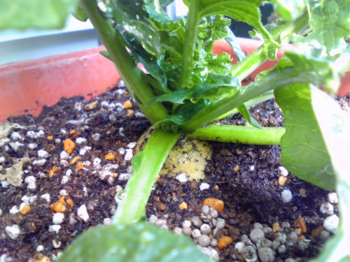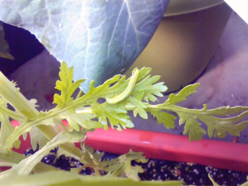 こんにちは~こうめまま★のテラス菜園へようこそ 雨上がりのテラスをパトロールしていると・・・。 ハケ-ン!!(o・ω『+』 春菊の葉の上に青虫さんをハケ-ン!!(o・ω『+』こんなに寒いのに頑張って生きている姿を見て健気だわぁ~とちょっと感動。゚(●'ω'o)゚。うるうるでもね、ごめんね~。青虫さんは見つけたら即捕殺Ψ( ̄∀ ̄)Ψケケケあぁ・・・ ためらわずに捕殺出来る自分が怖い うまくて〜からい!北海道でしか食べられないあの味うま〜い!!北海道産 苗にも使える土付山わ... 最後まで読んでいただきありがとうございます。ランキングに参加していますポチっとクリックして下さると嬉しいですにほんブログ村人気ブログランキングへ